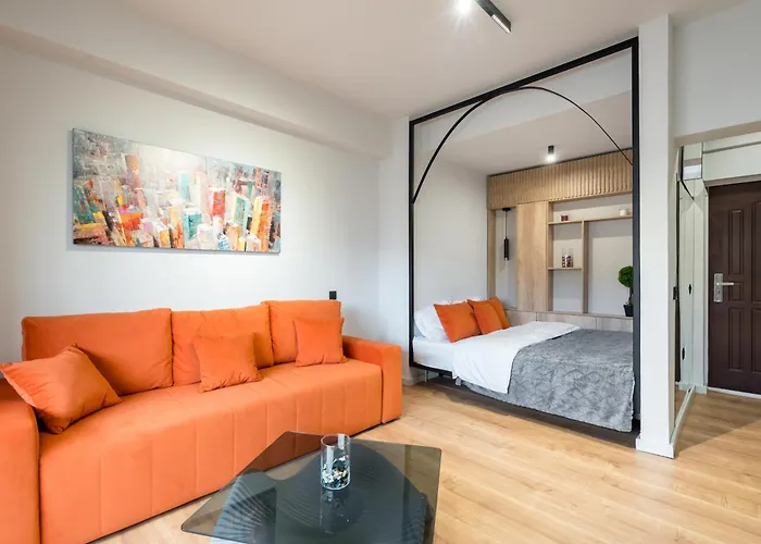 Apartmán Apartmán Tangerine Center, nacházející se 10 minut chůze od stanice metra Universitate, nabízí ubytování s Wi-Fi v celé budově. Toto ubytování zahrnuje 1 ložnic, 1 koupelen a kuchyňku.